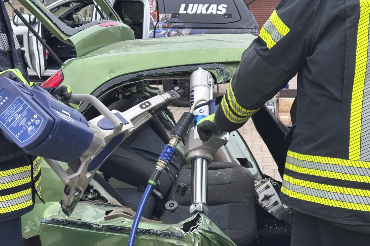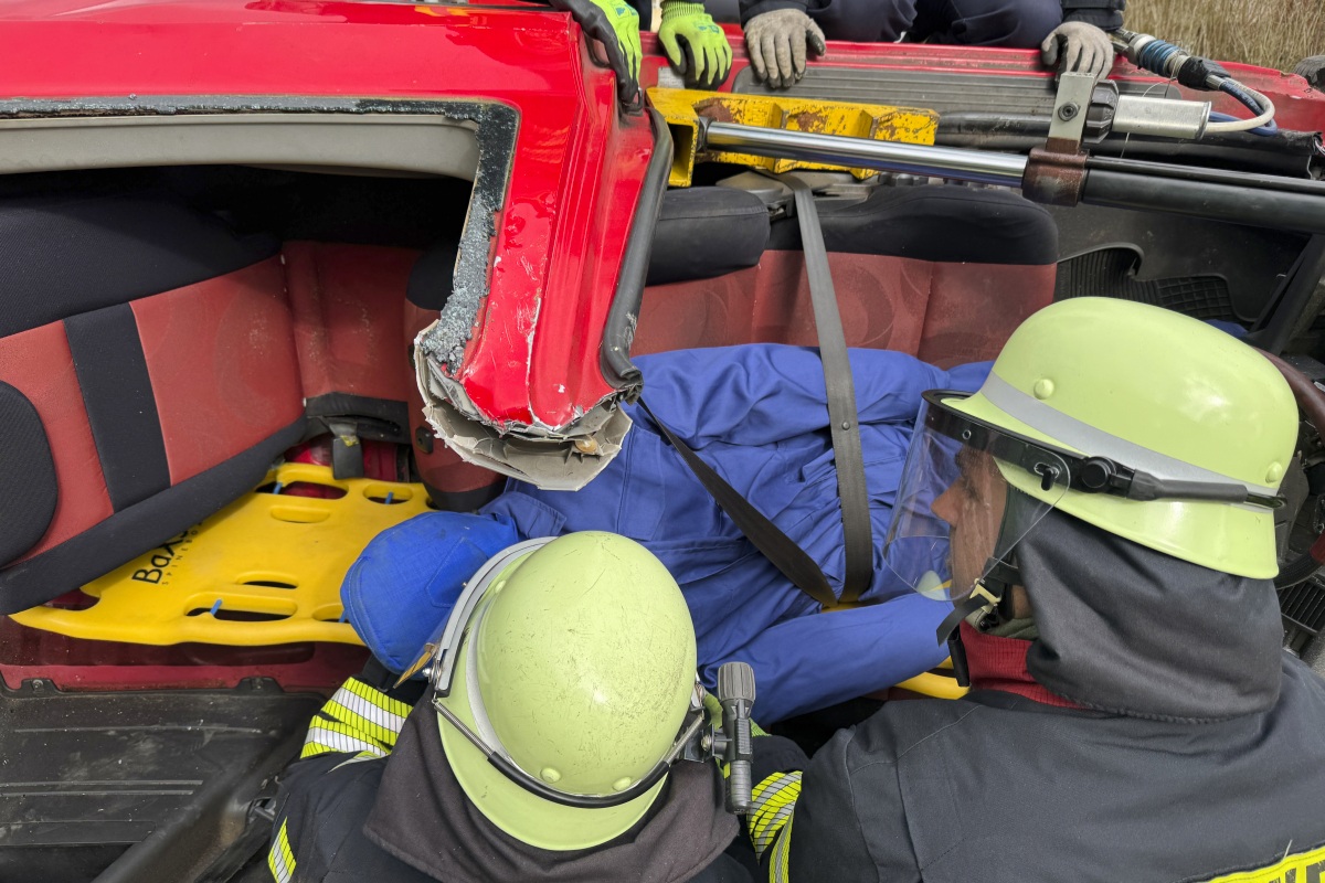 - Praktisches Ausprobieren von Schere und Spreizer an einem Übungsfahrzeug