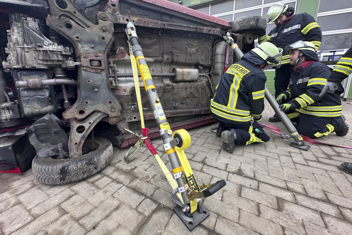 - Das Fahrzeug wurde mit einem zuvor geübten Stabilisierungssystem gesichert