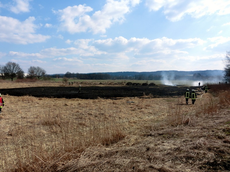 Mit 2 Hohlstrahlrohren wurden als Erstmaßnahme sämtliche Glutnester abgelöscht, um eine weitere Ausbreitung zu verhindern. Im weiteren Verlauf wurde mithilfe des LF8 eine Wasserversorgung aus dem Mühlenteich aufgebaut und es wurden zudem weitere Löschmaßnahmen mithilfe von Feuerpatschen und einem dritten C-Rohr eingeleitet. Nach ca. einer Stunde konnte nach erfolgreichem Löschen mit den Aufräumarbeiten begonnen werden. Zur Brandursache konnten keine Angaben gemacht werden.