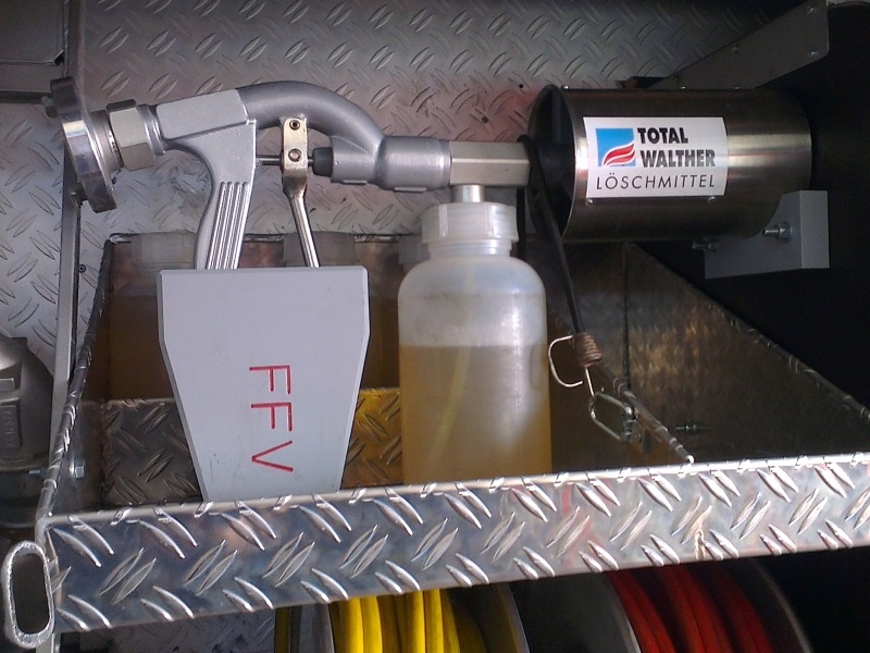 Nächster Umbauschritt beim TLF 16/25. Nach dem Bau des "Drehschwenkbeschlages" folgte jetzt die langfristige Verlastung der Mittelschaumpistole und der drei Reservebehälter.