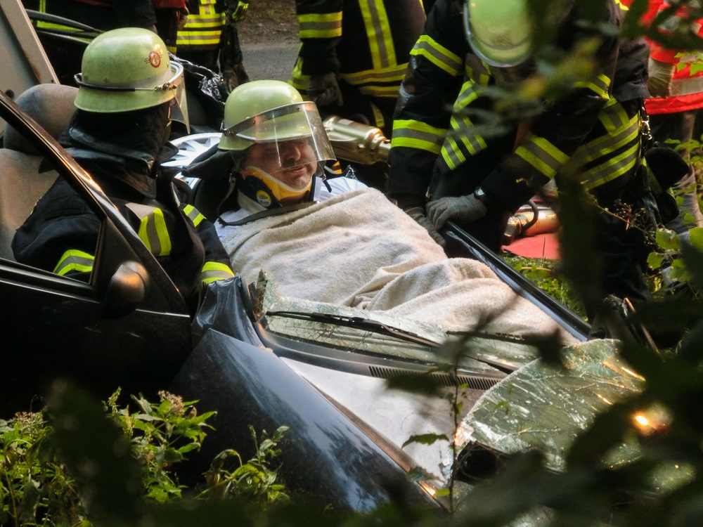 Die Ortswehren aus Ostercappeln und Hitzhausen wurden derweil angefordert. Die Kameraden aus Ostercappeln übernahmen die Befreiung der Personen aus dem zweiten Auto und die Kameraden aus Hitzhausen die Befreiung der Person unter den Bäumen. Nach circa 45 Minuten hieß es dann Übungsende und jeder konnte sich die einzelnen "Stationen" einmal im Detail anschauen.