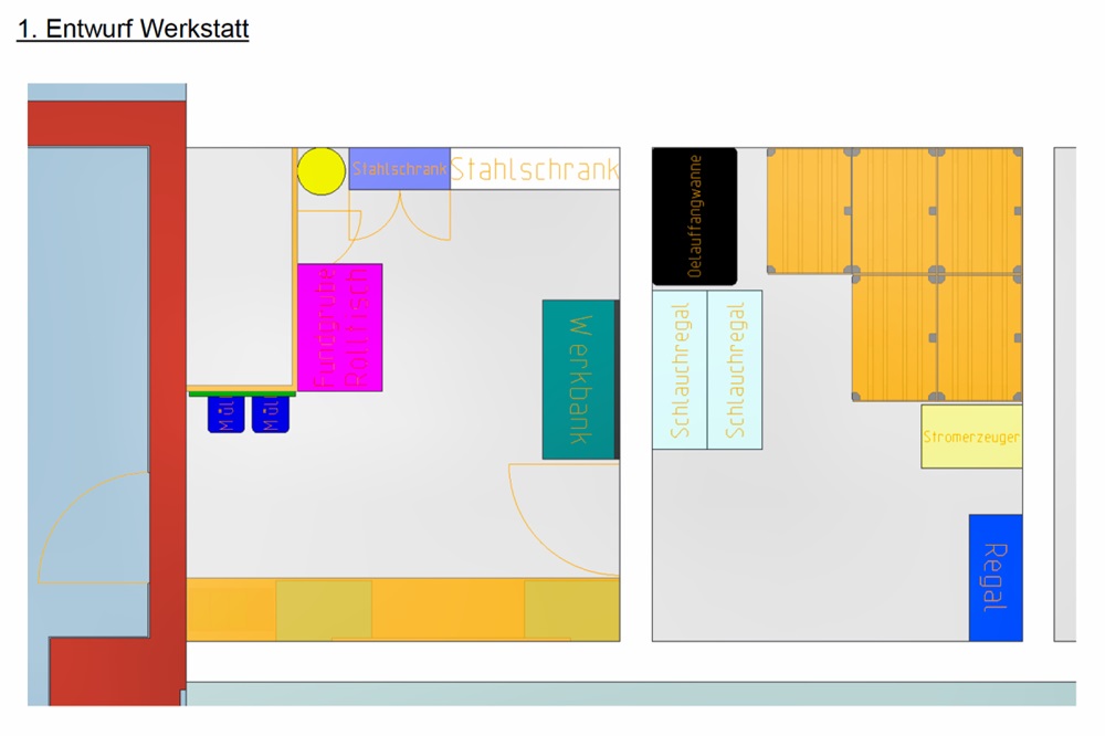 Zudem wurden zwei alte Metallschränke zur Aufbewahrung von Verbrauchsgütern und Übungsmaterial instandgesetzt und neu lackiert. Nachdem die Elektroinstallation erneuert war, erhielt auch die Werkstatt einen neuen Anstrich.