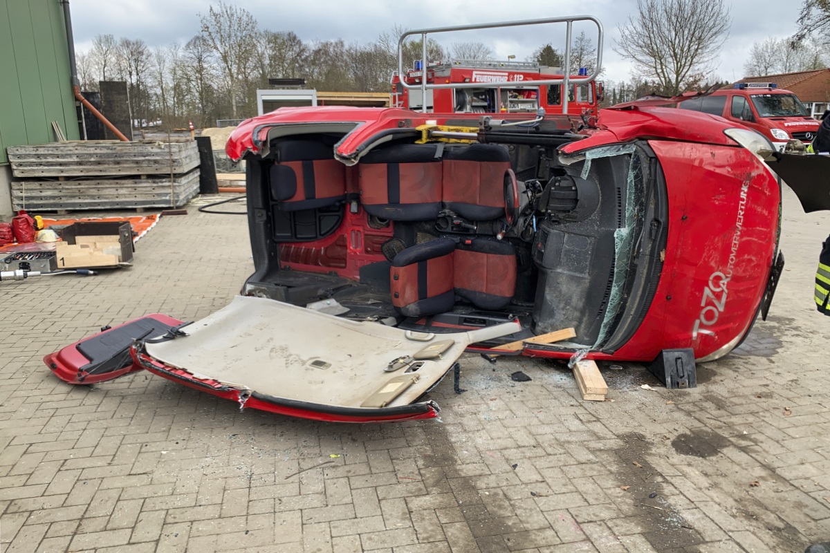 - Das Fahrzeug wurde mit einem zuvor geübten Stabilisierungssystem gesichert